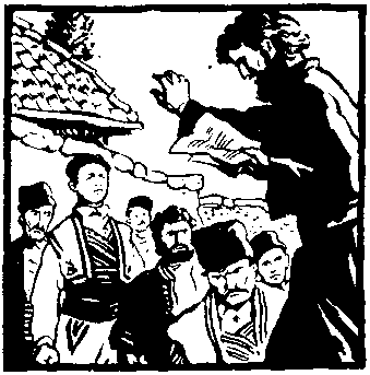Лучше смерть скоротечная, Чем долгая рабская жизнь! Лучше умереть в борьбе героем, Чем жить в бесчестьи!Васил точно объят пламенем. Слова жгут его мозг. Глаза горят, вскипает в жилах кровь, и руки сами сжимаются в кулак. А хозяин все читает, не заглядывая в книгу. Должно быть, много-много раз повторял он эти огненные слова. Васил боится потерять хоть одно из них. Он слышит, как зовет воевода отважных гайдуков — народных мстителей — к новым высоким помыслам: не месть отдельным насильникам, а борьба с общим бедствием, борьба со всей турецкой системой рабства, борьба организованная, общенародная: