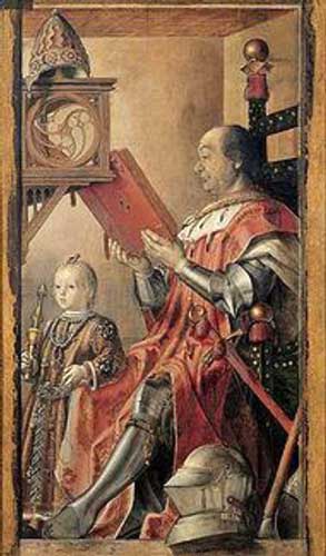 Джиан Галеаццо Висконти и три его сына, в качестве моделей для росписи в храме Мадонны (Цертоза ди Павия)