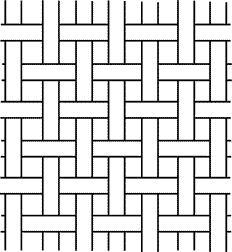 Техника выполнения этого плетеного узора схожа с полотняным ажуром. Вертикальные трубочки таким же образом выкладывают на одинаковом расстоянии, но горизонтальные трубочки укладывают уже через 2 вертикальные направляющие. Выполняют эту работу с помощью пинцета или вязального крючка. В каждом последующем ряду переплетение сдвигают вправо или влево на одну трубочку. Продолжают плетение до тех пор, пока работа не достигнет требуемых размеров (рис. 15).