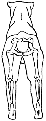 При проведении осмотра сзади задние конечности должны выглядеть прямыми и не слишком сближенными.