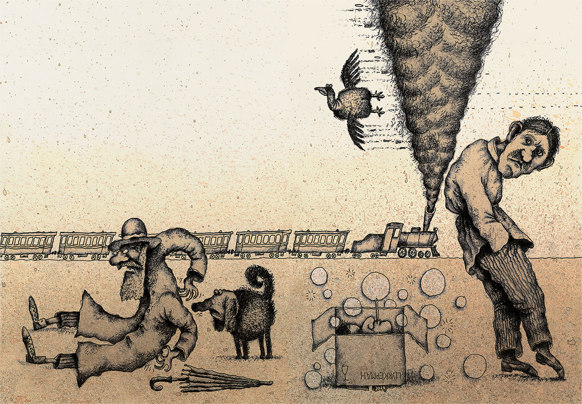 Из паровозной трубы шел пар, или, так называемый, дым. И нарядная птица, влетая в этот дым, вылетала из него обсаженной и помятой.