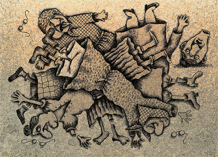 Однажды Орлов объелся толченым горохом и умер. А Крылов, узнав об этом, тоже умер. А Спиридонов умер сам собой. А жена Спиридонова упала с буфета и тоже умерла. А дети Спиридонова утонули в пруду. А бабушка Спиридонова спилась и пошла по дорогам. А Михайлов перестал причесываться и заболел паршой. А Круглов нарисовал даму с кнутом и сошел с ума. А Перехрёстов получил телеграфом 400 рублей и так заважничал, что его вытолкали со службы.