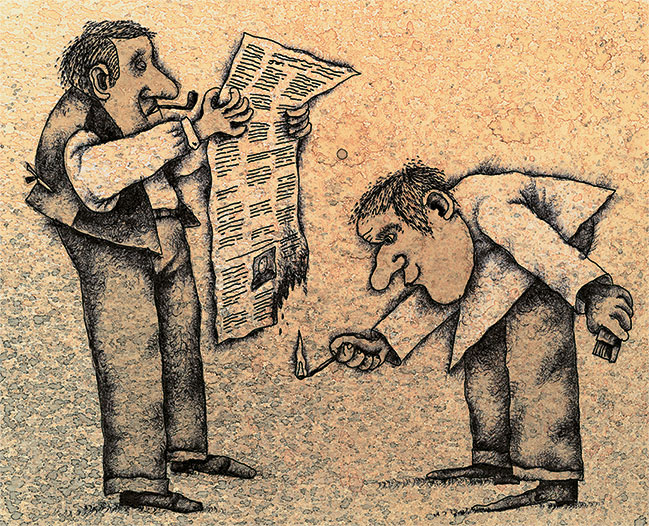 Калиндов стоял на цыпочках и заглядывал мне в лицо. Мне было это неприятно. Я отворачивался в сторону, но Калиндов обегал меня кругом и опять заглядывал мне в лицо. Я попробовал заслониться от Калиндова газетой. Но Калиндов перехитрил меня: он поджег мою газету, и когда она вспыхнула, я уронил ее на пол, а Калиндов начал опять заглядывать мне в лицо. Я, медленно отступая, ушел за шкап, и тут несколько мгновений я отдыхал от назойливых взглядов Калиндова. Но отдых мой был недлителен: Калиндов на четверинках подполз к шкапу и заглянул на меня снизу. Терпение мое кончилось: я зажмурился и сапогом ударил Калиндова в лицо.