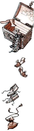 Капитаны столпились вокруг. Немо, стараясь не делать лишних движений, осторожно вытащил старую полосатую фуфайку, мокасины с вышитым полумесяцем, домашние туфли, кисет для табака с индейской вышивкой. Все обратили внимание, что на кисете был также вышит полумесяц.