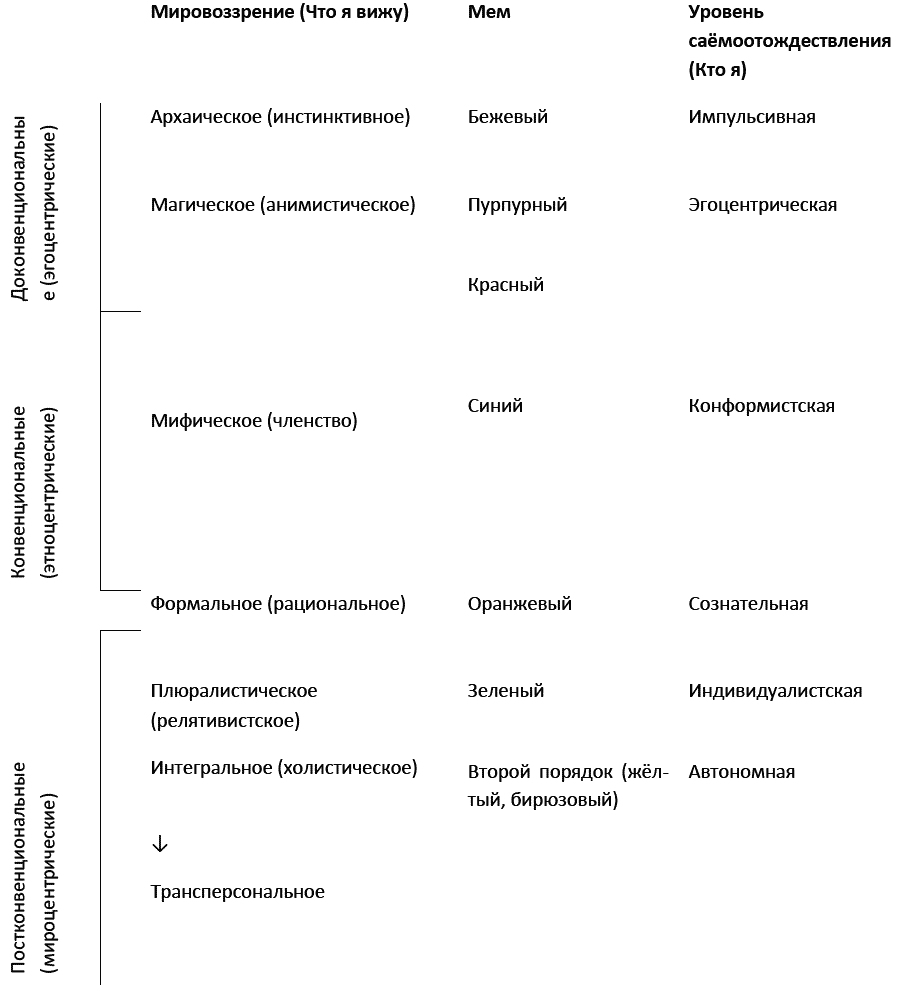 – На архаическом уровне восприятие мира в целом инстинктивное, а самость – импульсивная. Ей в основном управляют физиологические нужды и потребности (бежевый), от которых зависит биологическая жизнь.