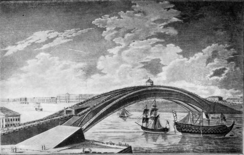 Проект деревянного арочного моста через Неву, составленный Кулибиным в 1776 году.