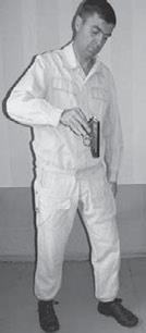 Расположите пистолет за поясом под правую руку. Извлеките пистолет в два приема: