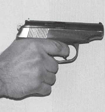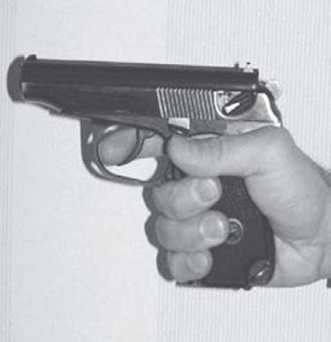 Движение указательного пальца до срыва курка не должно отклонять пистолет ни вправо, ни влево. Если во время срыва курка с боевого взвода, особенно при сильном провале курка, наблюдается небольшое отклонение ствола вверх, это допустимо и может быть исправлено более плотным поджатием безымянного пальца на рукояти пистолета.