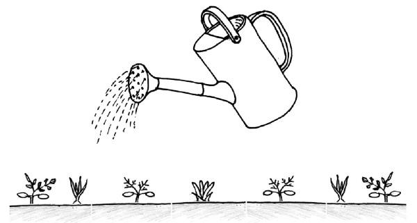 В поливах морковь нуждается только в первой стадии роста, до второго прореживания (рис. 64). В дальнейшем ее поливать не следует даже при сухой погоде. Дело в том, что у моркови центральный корень может уходить в почву на большую глубину, до 2 м. При избытке влаги она образует волосатый корнеплод, или корнеплод начинает у нее растрескиваться. Такая морковь не хранится, ее сразу же надо пустить на переработку для зимних заготовок. Растрескивание корнеплода может вызвать и внесение избыточных доз азота в почву. Часто садоводы от души поливают морковь настоем сорняков, а потом изумляются, отчего корнеплоды растрескались?