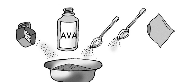 Приготовить смесь из чай ной ложки семян, чайной ложки порошковой фракции удобрения AVA и полстакана песка или трухи от спитого чая (листовой смолоть на кофемолке) и кофе. Перемешать.