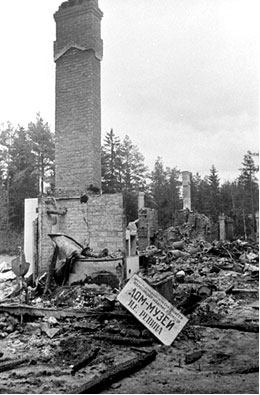 Вид разрушенного здания музея-усадьбы И. Е. Репина. «Пенаты» в Куоккале (ныне – пос. Репино), 1942 год