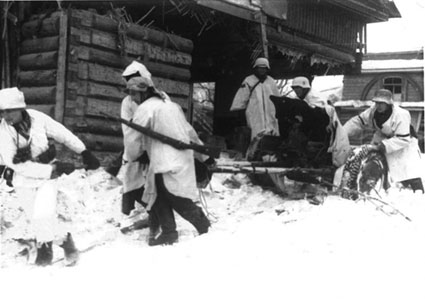 Расчет немецкой пушки меняет позицию