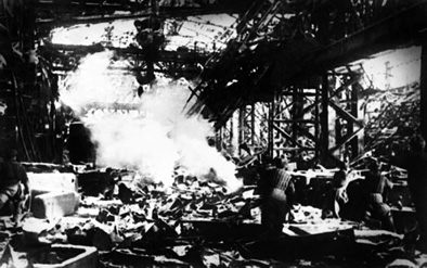 Узнав о прибытии свежих сил в заводской район, противник бомбит участок между заводами. На боевые порядки батальонов обрушиваются бомбы до тонны весом (к. 40).