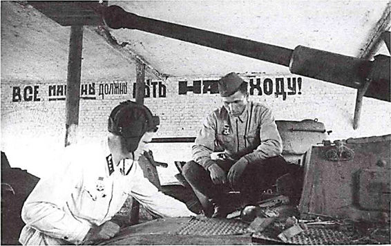 Мастерские одного из ремонтно-восстановительных батальонов фронта. Советские ремонтники осматривают трофейный танк Pz. IV Ausf.F2, на заднем плане Т-34 и Т-60 (РГАКФД).