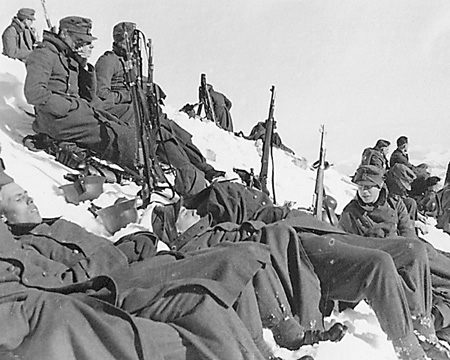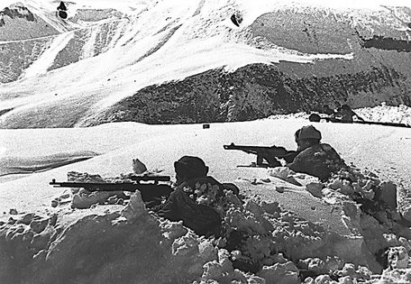 Кавказский фронт. Советские воины обороняют один из горных перевалов.