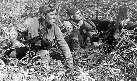 Пулеметный расчет готовится к отражению атаки противника