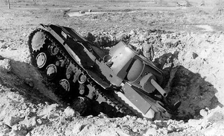 КВ-1 провалился в воронку от немецкого снаряда
