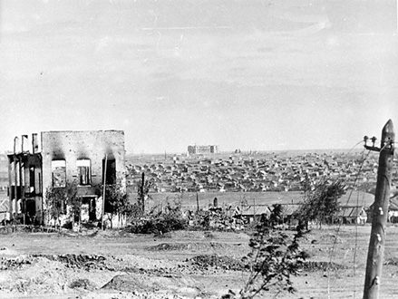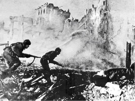 До 27 сентября 1942 г. яростная борьба шла за вокзал. 13 раз он переходит из рук в руки. Улицы и площади города превратились в арену кровопролитных боев, которые уже не затихали до окончания битвы. В районе площади имени Девятого января действовал 42-й полк 13-й гвардейской дивизии. Напряженные бои здесь продолжались более двух месяцев. Каменные здания – Дом сержанта Я. Ф. Павлова.