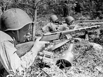 Командир взвода противотанковых ружей с бойцами приготовились к бою.