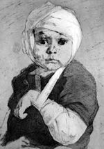 На другой день я шла мимо этого дома. Там происходили раскопки. Я просунула голову в дырку забора и стала смотреть. Вдруг один милиционер что-то поднял на лопату, понес и заплакал. Я взглянула и увидела, что на лопате лежит маленькая детская ручка. Я больше не могла смотреть и убежала».