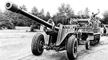 Советская артиллерия на марше.