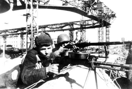 Рабочие Сталинградского тракторного завода (СТЗ) на защите своего завода от наступающих немецких войск.