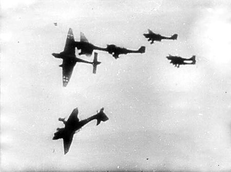 В это время. Телефонная связь с частями прерывается, переходит на радио. Наша авиация не может подняться с аэродромов, авиация противника блокирует наши аэродромы.