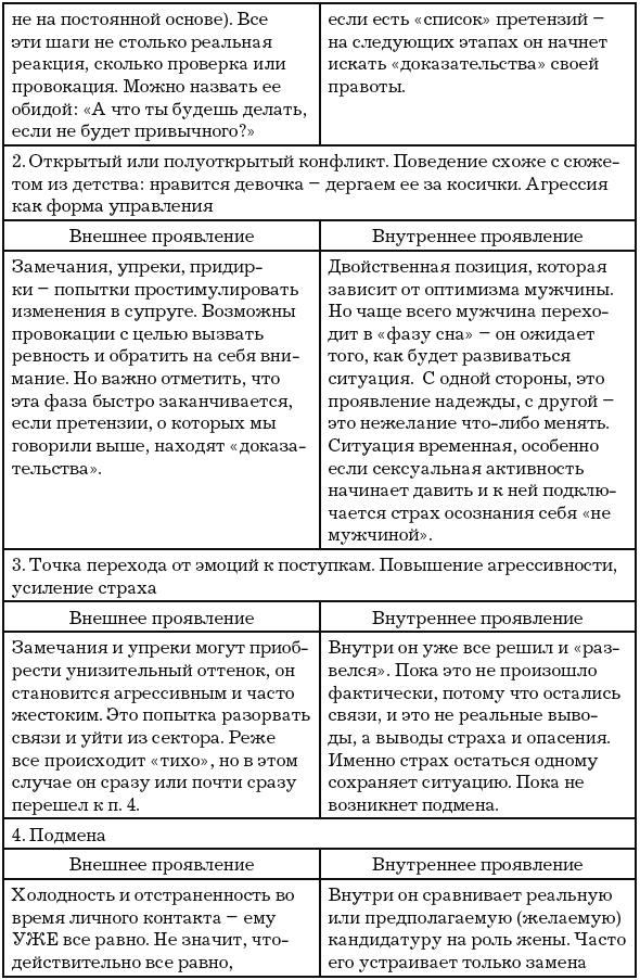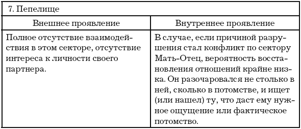 Конфликт на секторе Жена часто является причиной расставания. Но только если женщина допустила множество ошибок, и другие сектора содержат конфликты. В ином случае все заканчивается на п. 1–5.