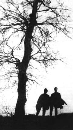 Квадратное поле с овсяной стерней. Кругом лес: осинник, березнячок, горелые сосны и редкие молодые сосенки. Если хорошо приглядеться — при лунном свете на стерне поблескивает вчерашний замерзший дождь. Красная луна на невидимом парашюте тихо опустилась в березняк, и овсяное поле остались стеречь только звезды.
