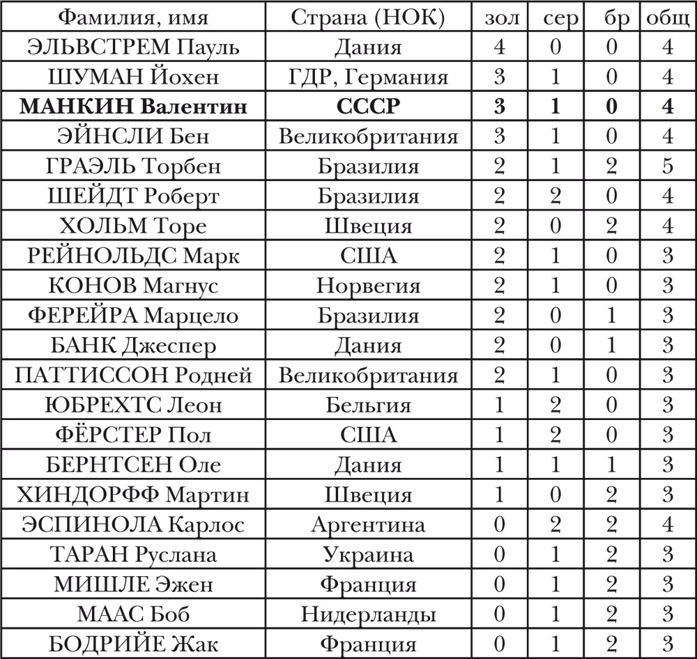НАИВЫСШИЕ ЛИЧНЫЕ ДОСТИЖЕНИЯ (в сумме не менее 3 медалей). МУЖЧИНЫ