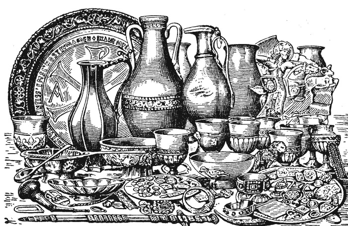 Серебряные и золотые вещи, найденные в Перещепинском кладе