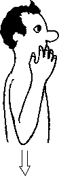 Утюг (рис. 2.28 и 2.29): локоть выдвинут вперед, ладонь находится над плечевым суставом и обращена назад-вверх. Нажим осуществляется вниз; при этом с телом клиента соприкасается сравнительно ровная площадка. Ее легко ощутить, сев за стол и облокотив голову на руки, выдвинутые локтями вперед.