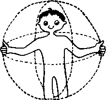 Рис. 2.1. Энергетический шар между ладонями целителя, разделенный вертикальной плоскостью на правое и левое полушария, энергию которых целитель затем распределяет вокруг своих кистей.