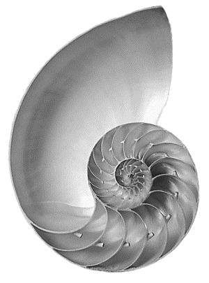 Теперь обратимся к царству животных: все мы хорошо знакомы с чарующе прекрасными спиральными структурами многих раковин моллюсков, например, вида Nautilus pompilius (рис. 4). Между прочим, такую раковину держит в руке танцующий Шива из индийских легенд – это символ одного из орудий творения. Кроме того, структура этих раковин вдохновляла и многих зодчих. Например, американский архитектор Фрэнк Ллойд Райт (1869–1959) положил эту структуру в основу здания музея Гуггенхайма в Нью-Йорке. Попав в музей, посетители поднимаются по спиральному пандусу, насыщая воображение созерцанием произведений искусства – точно так же, как моллюск выстраивает новые спиральные камеры, заполняя свое физическое пространство. В главе 5 мы увидим, что рост спиральных раковин также подчиняется правилу, основанному на золотом сечении.