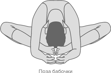 1. Сядьте на пол, разведите колени в стороны и соедините ступни, по возможности придвинув их ближе к тазу.