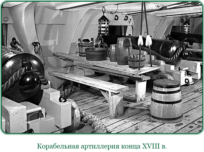 В экзерциции, при обучении служителей пушками в двух колоннах, стараться, сколько можно, содержать дистанцию ровнее и непременно содержать себя [на] траверзе один против другого, дабы удобнее было пушками наводить и прицеливаться; при экзерцициях прицел служителей, кому надлежит поверять, чтобы дула пушечные не опускали низко и не возвышали излишне, а наводили бы точно в желаемые места против кораблей, а не мимо.