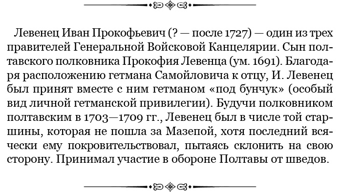 И понеже нам, яко Государю и оборонителю Малороссийского края, надлежит отческое попечение о вас иметь, дабы в то порабощение и разорение Малой России, також и церквей Божиих во осквернение не отдать, того ради повелеваем всей генеральной старшине, полковникам и прочим вышеобъявленным чинам войска Запорожского, дабы на прелесть и измену сего изменника, бывшего гетмана, не смотрели, но при обороне наших великороссийских войск против тех неприятелей стояли.