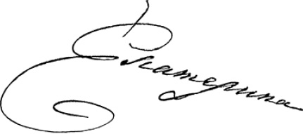 Во утверждение всего вышеписанного мы сию нашу жалованную грамоту на права и выгоды верноподданным нам городам собственною нашею рукою подписали и государственною нашею печатью укрепить повелели. В престольном нашем граде святого Петра апреля 21 дня, в лето от Рождества Христова 1785, царствования же нашего в двадесять третие.
