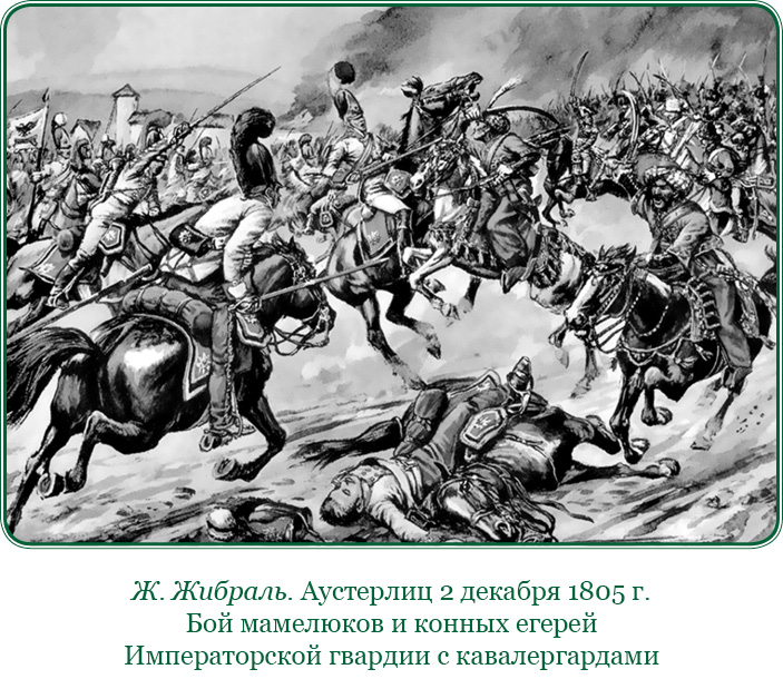 Французские колонны, остановленные бригадою графа Каменского, развернулись в 300 шагах от нее под картечным огнем и построились на два фаса: один – против этой бригады, а другой – против австрийцев; последние собрались и устроились позади графа Каменского и стреляли снизу вверх и с малой действительностью. Французы находились значительно выше них, и немного выше русских; как только они развернулись, они открыли огонь.
