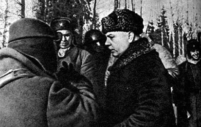 К. Е. Ворошилов беседует с воинами Волховского фронта (январь 1943 г.)