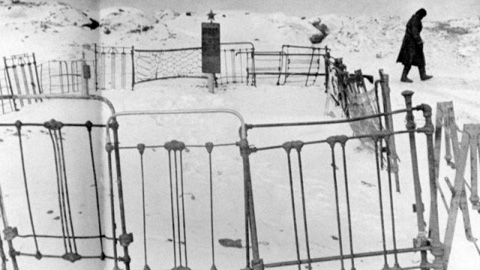 Братская могила советских солдат в Сталинграде. Оградка сделана из спинок кроватей