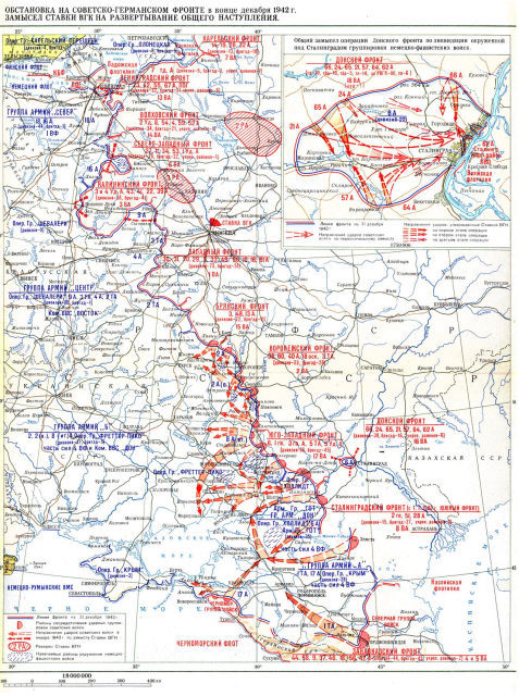 Генерал-полковник артиллерии Н. Н. Воронов представил на утверждение Верховному Главнокомандующему И. В. Сталину подробный план разгрома окруженной сталинградской группировки противника (операция «Кольцо»): «Представляя план разгрома окруженной Сталинградской группировки противника на Ваше утверждение, докладываю: главный удар наносится силами Донского фронта – четырнадцать стрелковых дивизий, восемь танковых полков, тридцать два артполка, девять гв. минполков… в общем направлении на Бабуркин – хутор Гончара – Сталинградский – пос. Красный Октябрь. Цель удара – расколоть окруженную группировку с запада на восток и последовательно уничтожать ее по частям».