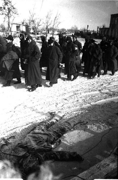 Колонна немецких военнопленных на окраинах Сталинграда. Конец декабря 1942 г.