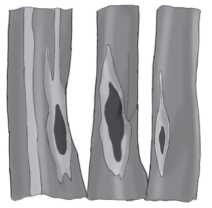 Заболевание поражает верхние чешуйки лука. Больные луковицы размягчаются, а между чешуями образуется черная пылящая масса мелких спор. Их диаметр составляет 2–5 мм.