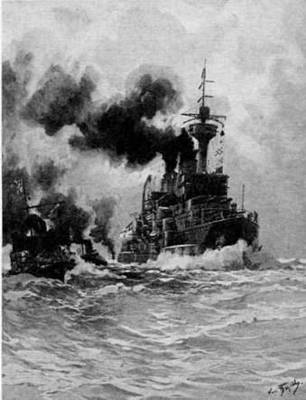 Число же миноносцев, принимавших участие в маневрах, не отвечало действительной потребности. В германском флоте на каждую эскадру полагалось иметь две флотилии миноносцев (по два дивизиона по 5 кораблей), всего на две эскадры 40, а на самом деле были назначены две флотилии, и то не полные (18 миноносцев).