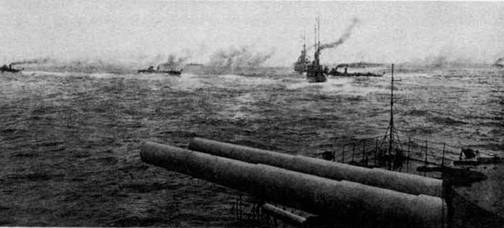 1-я эскадра: командующий эскадрой вице- адмирал принц Генрих Прусский, начальник штаба капитан 1-го ранга фон Хееринген, офицеры морского генерального штаба корветтен-капитан Боедикер, капитан-лейтенанты Маркс и Мёурер, флаг-лейтенант обер-лейтенант фон Мюллер; младший флагман контр-адмирал Шмидт, офицер морского генерального штаба капитан-лейтенант Доминик.