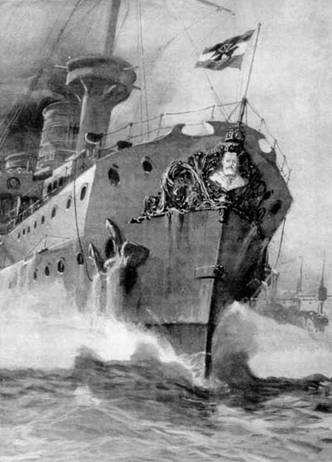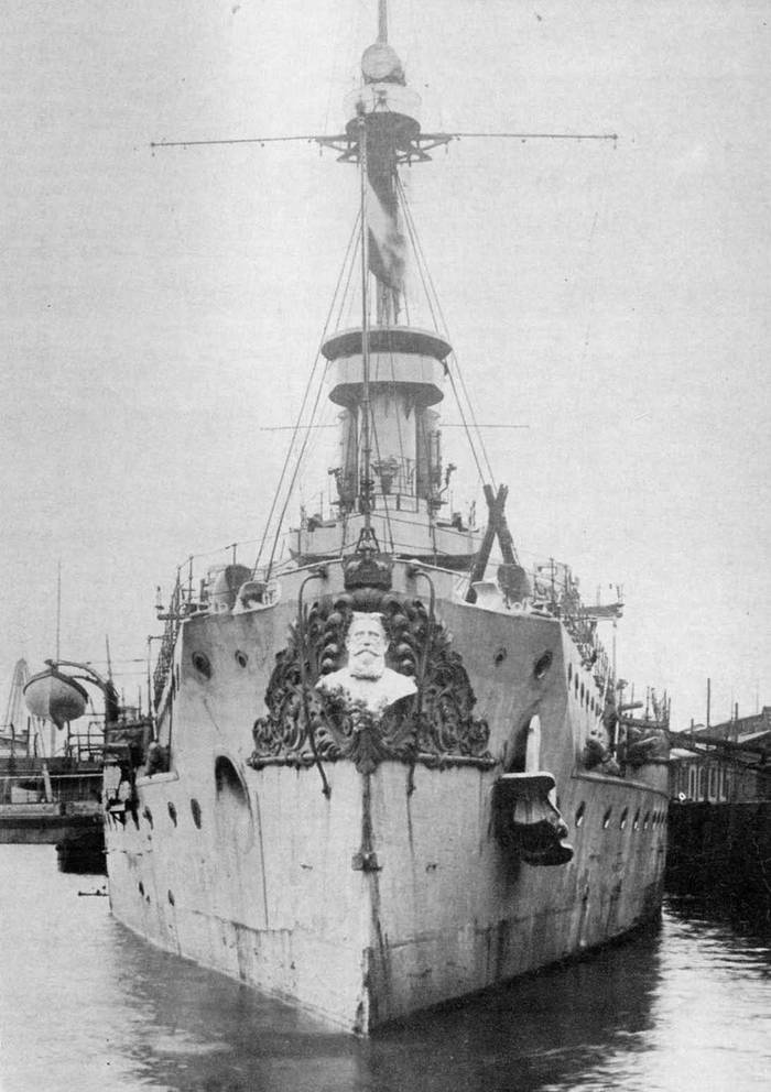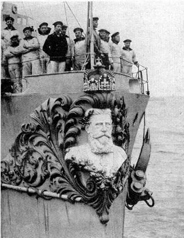 Бак “Кайзера Фридриха III” (вверху) и его носовое украшение