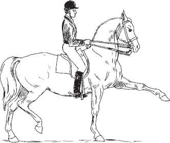 Исправлять это следует обратным действием повода в тот момент, когда передняя нога лошади поднята, всадник обе руки с поводьями подает в эту же сторону, чтобы лошадь ступила не через стоящую на земле ногу, а покачнулась бы передней частью в другую сторону. Может случиться, что наступание на землю будет не таким мягким, но зато это перекачивание облегчит подъем другой ноги. Выждав, когда поднялась и вытянулась другая нога, всадник переносит обе руки в эту сторону. Таким образом, вместо того чтобы плести передними ногами, лошадь приучается широко их ставить. Дело чутья наездника применить этот способ в должной мере, чтобы добиться правильного хода лошади.