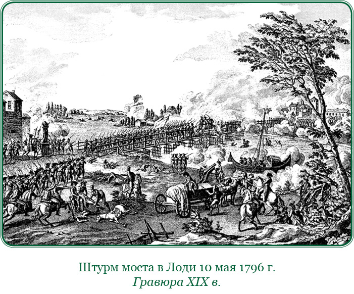 Она была еще так далека от театра военных действий и от всякой опасности, что противник о ней не беспокоился. Липтай все-таки успел развести подъемный мост и расставить на валу полевые пушки. Французский авангард остановился с наступлением ночи при Малео на расстоянии половины пушечного выстрела от Пиццигетоне. Лагарп отошел назад, чтобы стать впереди Кодоньо, прикрывая дороги из Павии и из Лоди.