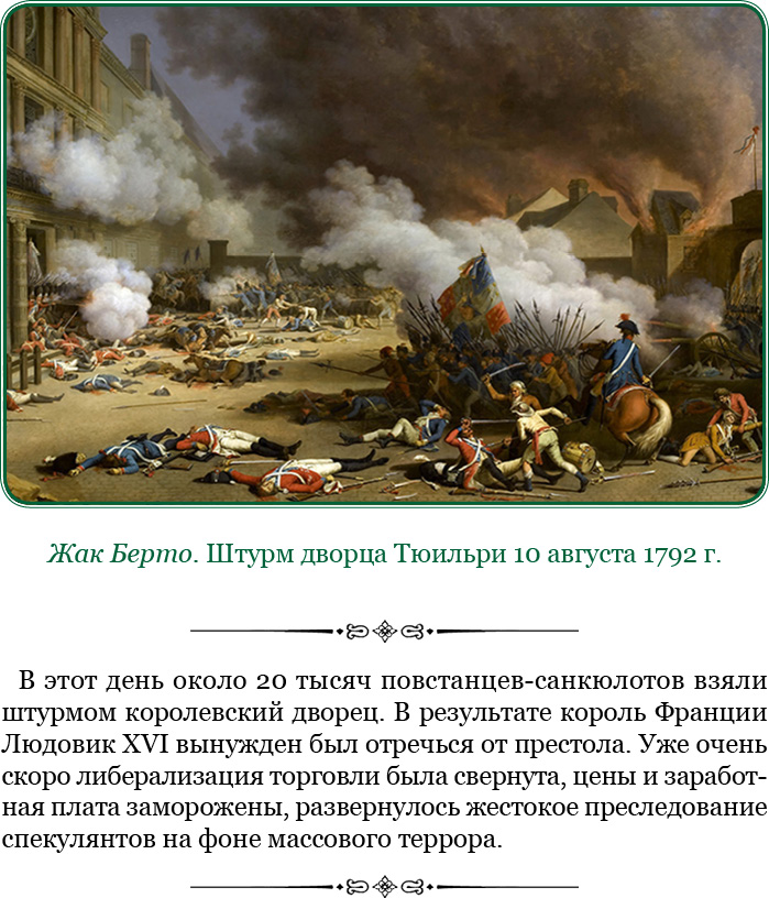 Впрочем, то, что творилось во Франции, могло только служить дальнейшим толчком к эволюции Наполеона, примкнувшего сначала к революции под влиянием ненависти к привилегиям и той идеологии, от которой он совершенно отрекся впоследствии. Все его дальнейшее поведение главным образом уже вращалось в сфере честолюбия и жажды деятельности, власти и славы. Идиллические представления о счастье народов, мире и свободе, с которыми революционеры начали свое великое дело, при общем восторге своих современников, быстро уступали натиску взбаламученного моря человеческих страстей.